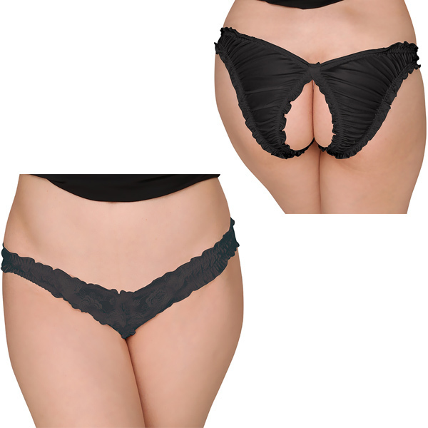 フェリカ&レース生地股割れハーフバック ブラック