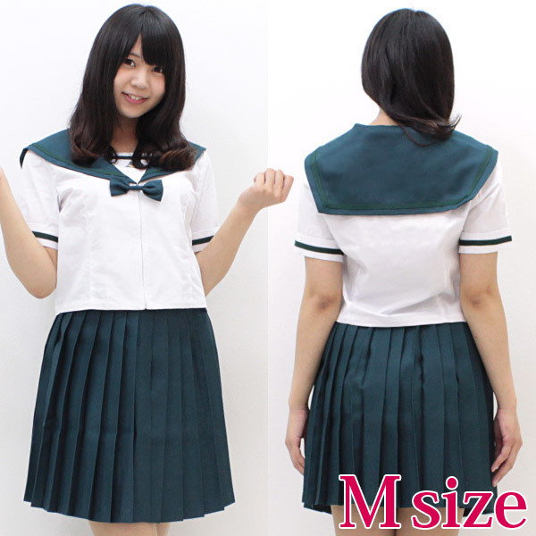 お嬢様学校として有名な学校の夏服セーラー服(M)がついに登場!ちょっぴり珍しい深緑カラーでキュートに仕上げた制服コスプレです。