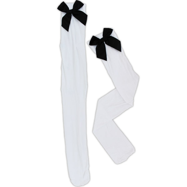 【420円★数量限定】リボン付きニーハイ 白×黒リボン<お一人様1点限り>