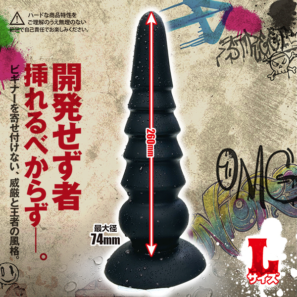 圧倒的なサイズ感と存在感を誇るエキスパート向けアイテム♪挿入部長約26.0cm、最大径約7.4cmのハード仕様です!柔らかなリキッドシリコン素材を使用し、しなやかさと安心感のある使用感を実現♪表面は段差のある蛇腹構造で、段階的な刺激が楽しめます!底部には強力な吸盤付きで、壁や床にしっかり固定可能♪両手を使わずに安定した使用ができ、自由な体勢で楽しめます!重量は約730gでしっかりとした重さが特徴♪本格的な使用感を求める方にぴったりの一本です!